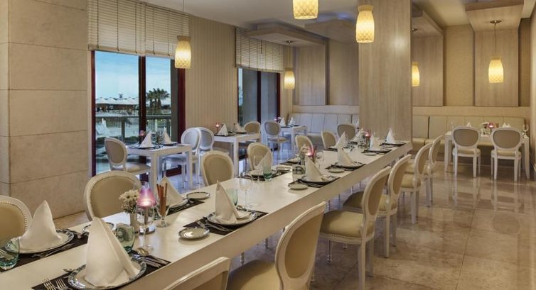 Бари та ресторани: головний ресторан розрахований на 1200 чол. (критий, з кондиціонером, літня тераса, дієтичне меню, дитяче меню, дитячі стільці), лобі-бар (10:00-24:00), бар біля басейну (10:00-24:00), бар на пляжі (11 :00-17:00), Irish-бар (17:00-24:00), диско-бар (23:00-02:00) та ін. 3 ресторанів A la Carte: італійський, азіатський, барбекю - відвідування одного з ресторанів безкоштовно 1 раз за час проживання в готелі за попередньою резервацією.