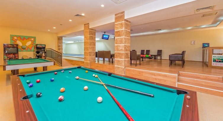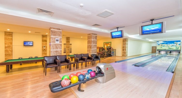 Еще есть тренажёрный зал, детская площадка (расположена неудобно, потому туда не ходили), игровые автоматы, боулинг, но все это было не особо востребовано среди отдыхающих. Ощущение, что это все ради того, "чтоб было".