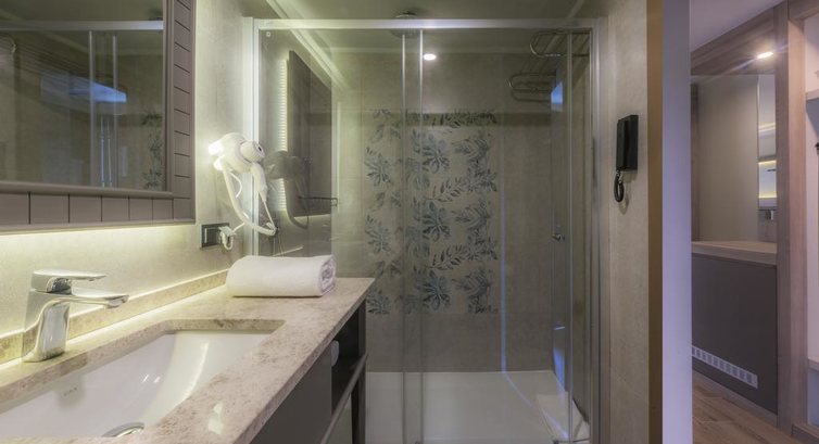 Стильные удобные номера, разнообразное и вкусное питание, зеленая ухоженная территория. Анимация есть в отеле, плюс аниматоры вывозят всех желающих на бар-стрит и, что немаловажно, бережно привозят обратно. Пляж небольшой, но лежаков много и всегда хватало всем желающим. Море чистое, красивый пейзаж в бухте. Мы отдыхали в начале июня, это еще не совсем сезон в Бодруме - поэтому в отеле было очень много пожилых иностранцев. В сезон, по словам аниматоров, молодежи больше. Но этот фактор никак не влияет на времяпрепровождение - как я уже писала, вечером можно ездить на бар-стрит, а днем и в отеле весело и интересно. Пожалуй, единственный минус - за воротами отеля фактически степь, выйти погулять пешком некуда, можно только ехать в город, хоть это и близко и недорого.