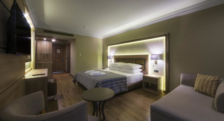Отель отличный, даже не ожидали. Отдыхали в начале июля. Прибыли в отель в 10.00 и сразу заселили, номер отличный, убирали каждый день. Питание отличное есть все рыба, мясо, курица, супы, каша, фрукты любые, одним словом Все. Персонал вежливый правда не все разговаривают по русски. Территория большая, зеленая. Русских мало, много европейцев. Развлекательная программа каждый день.