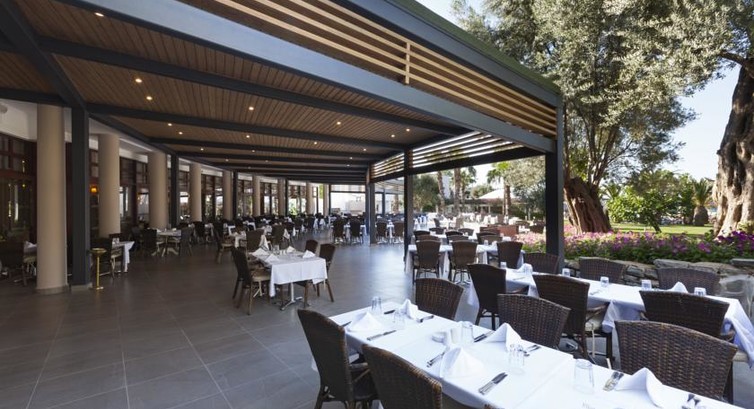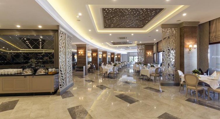 Бари та ресторани: головний ресторан розрахований на 610 осіб (критий, з кондиціонером, літня тераса, дитяче меню, дієтичне меню, дитячі стільці), palm-бар (10:00-24:00), бар біля басейну (10:00- 24:00), диско-бар (23:00-02:00), снек-бар (10:00-24:00), Biberon-бар (08:00-24:00), панорама-бар (17: 00-24:00). Ресторан A la Carte: турецька - відвідування безкоштовно 1 раз на тиждень, за попередньою резервацією.