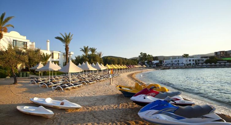 Потрясающий отель - один из лучших в Бодруме. Отель состоит из основного корпуса и множества бунгал. Отдыхали мы с мужем в бунгало. Территория отеля очень уютная - зелёная. Кругом деревья, растения и цветы. Кормят очень вкусно - разнообразные завтраки, а обед и ужин выше всяких похвал. Кроме этого закуски (пиццы, выпечку, соки, седвичи и т.д.) в барах подают весь день. Фрукты были каждый день. Море песчаное и чистое- отель получил голубой флаг в знак чистоты пляжа. Даже купаясь на глубине было видно дно моря. Комнаты убирались каждый день и ежедневно менялись полотенца. Очень тактичный персонал - если мы ставили на дверь табличку "не беспокоить" - то никто к нам не заходил. Сервис на высочайшем уровне. У нас как то случилась небольшая проблема с кондиционером и мы позвонили на ресепшн. Неуспели мы положить трубку на место как мастер уже стучался в дверь и сразу всё исправил. Это при том, что наше бунгало находилось на противоположной от ресепшена стороне отеля. Прямо недалеко от отеля есть остановка. Оттуда турецкие маршрутки - "долмуши" едут в центр Бодрума каждые 10 минут. По вечерам были прикольные анимации для детей. Всем своим друзьям уже посоветовала этот отель.