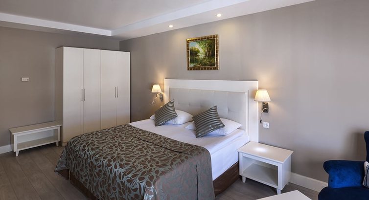 Отдыхаем в этом отеле не первый год, все очень нравится. Публика в основном европейцы, правда последнее время русских стало больше. Территория компактная, но очень зеленная. Пляж чистый, есть душ и кабина для переодевания, туалет. Море чистое и спокойное, но правда во второй половине для начинается ветер с моря и появляются волны, и это каждый день, но это совсем не мешает. Здесь нет изнуряющей жары как например в Анталии, постоянный небольшой ветерочек, очень комфортно. Питание- достаточно разнообразное, каждый день мясо и рыба, причем не в виде котлет или полуфабрикатов,салаты, мороженое, фрукты,сладости ну это все стандартно, много и в любое время. Номера-небольшие, уютные, достаточно большая ванная комната, с ванной, на полу 1 этажа плитка, на 2-ом ковровое покрытие. Хорошая детская анимация по вечерам, горка, детская площадка (в тени) что немаловажно. В целом впечатление от отеля, очень и очень позитивное, тихий, спокойный отдых для семейный пар с детьми и пожилых людей, молодежи здесь будет скучно.