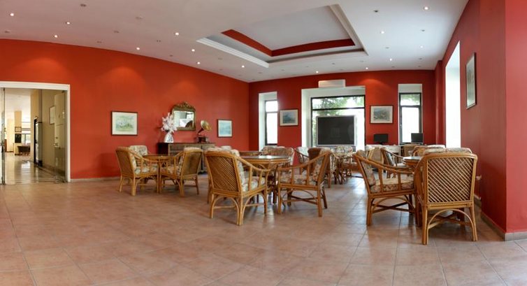 Прямо со входа в отель понимаешь куда ты попал). Прямо из ступенек растёт трава, у входа в отель лежит побитая тротуарная плитка, на ресепшене стоят засаленные кресла, под ступеньками валяются горы мешков с грязным бельём. Обеденная зона разделена с ресепшеном горшком с цветами(очень неуютно).