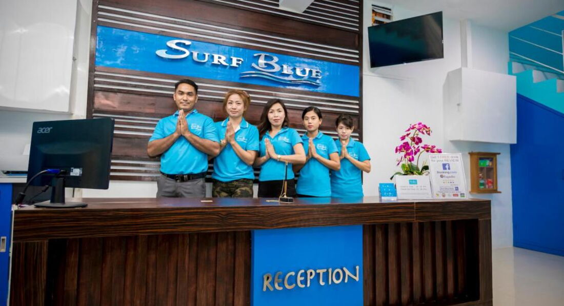Готель Surf Blue знаходиться на пляжі Ката, за 900 метрів від міні-гольфу Dino Park. Готель Surf Blue розташований за 1,7 км від пляжу Ката-Ной і за 2,2 км від місця проведення сафарі на слонах Кок-Чанг. Розташований на пляжі Ката, за 300-450 м від моря (4-6 хв ходьби), за 11 км від зони нічних розваг пляжу. Готель був відкритий у 2001р, оновлений у 2015р. Всього 101 номер, у трьох зонах, восьми 1-поверхових спорудах. Депозиту при заселенні немає. Домашні тварини не допускаються. Номери для інвалідів немає. Сполучених номерів немає. Куріння дозволено на терасі. Компліменти іменинникам – фрукти, молодятам – прикраса ліжка.