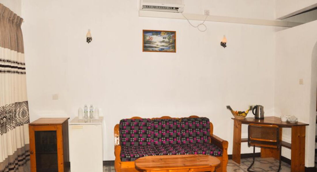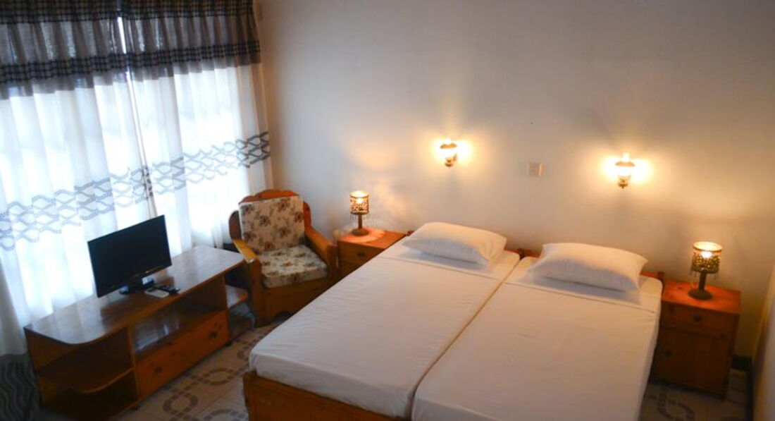 Все номера расположены в 2-х этажном здании вокруг бассейна. Номера просторные, разной категории и стоимости: у нас были номера без кондиционера, но с вентилятором, холодильником (но не во всех номерах), телевизором (тоже не во всех номерах - русского канала нет). Чайных принадлежностей нет. Кипяток можно попросить на ресепшене. В ванной: душ, санузел и только мыло. Мебель не новая, но для нас это не имело абсолютно никакого значения. Номера прибирают по требованию. Пляжные полотенца можно попросить на ресепшене. Обязательно покупайте переходник, розетки нам не подходят.