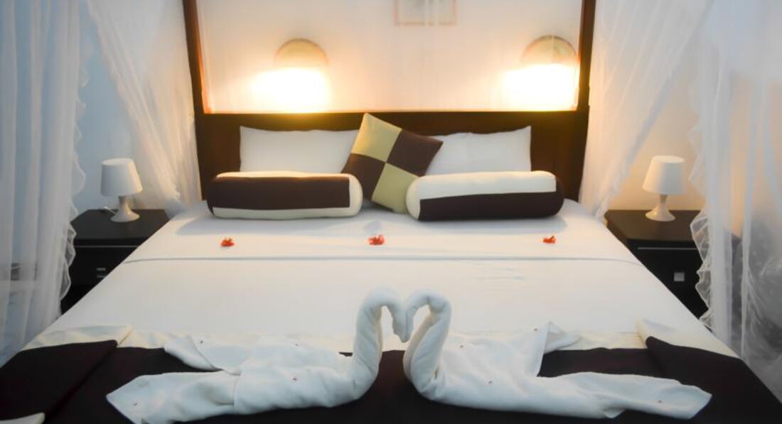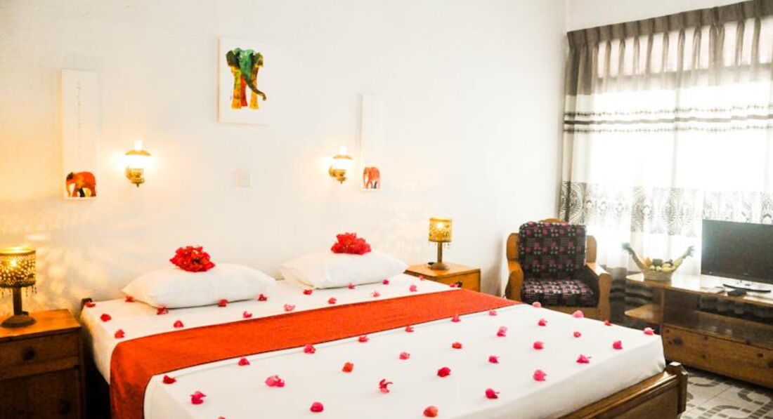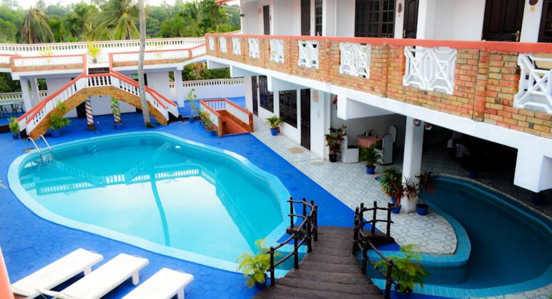 Очень уютный и чистый отель, с не плохим и чистым бассейном (есть надувные штуки для детей, зверушки и маленький бассейн), с просторными номерами из двух комнат, в одной комнате или одна большущая кровать с балдахином или две наверное полуторки, во второй комнате поменьше, гардероб со столом и зеркалом, совместный санузел с душем. Большой вентилятор в спальне, кондиционер (пульт дают при отплате кондиционера, если заказывать заранее номер с кондиционером, то обойдётся незначительно дороже, чем без него), небольшой холодильник с маленькой морозильной камерой, прикроватные тумбочки и один столик с полочками, стол со стулом в углу, кофейный столик и диванчик отдельно и ещё один шкафчик размером с холодильник у входа, плотные шторы на окнах, ночники над кроватями, уютного красноватого оттенка светильники по углам в спальне на противоположной стене и один такой во второй комнате возле зеркала. Сейфа нет, но ничего не пропало, было много разной техники и денег по разным углам. Убирают когда попросили и оставили ключ на ресепшен, оставляли на кофейном столике по сто рупий. В номере было немного комаров и пара мух, которые не такие надоедливые как у нас, был в ванной гекон и сверчёк (он молчал, не мешал). Завтраки однообразные, но вкусные и нам не надоедали, обед и ужин можно у них заказать. Есть три сетки Wi-Fi, скорость для того чтобы поговорить или послушать интернет радио, нам хватало, есть телевизор на улице с том месте где проходят завтраки. До пляжа 10 минут по интересной и зелёной улице, вечером часто видели светлячков - супер зрелище! Пляж тут же чистый на всём протяжении и разнообразный, где-то волны, где-то кораллы с разной живностью, где-то просто штиль и чистый белый песок на дне, купался народ там даже с годовалыми детьми. До нормальных кафешек ходьбы минут 15, на 1500 рупий можно поесть деликатесов с фрешем или пивом, есть и супы и десерты и мороженное и вегетарианская пища. Минус ОГРОМНЫЙ для нас (не отеля, а самой Хиккадувы и думаю всей или практически всей Шри-Ланки) это то, что нет ночной жизни совершенно, после 10 вечера (по их времени естественно), ВСЁ закрывается, не поесть, не попить, ничего не купить!!! В номер без проблем можно проносить любые напитки и еду. Алкомаркет прямо в конце дороги по пути от отеля к пляжу, а в обратную сторону (направо из отеля) и пройдя там немного по шоссе метров 300 направо, будет палатка с овощами и фруктами и самым вкусным и дешёвым соком!