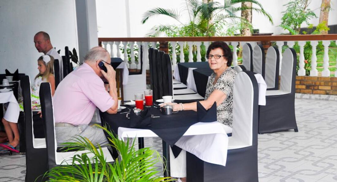 Только вернулись из этого отеля.Очень достойный с красивой зеленой территорией и приветливым персоналом,который во всем старается тебе угодить и понять тебя.Завтраки омлет,фрукты,чай/кофе с тостами.Расположение отлично,от пляжа метров 500-1000 в зависимости от места,где вам больше понравится.Пляж с морскими черепахами и рыбками.На пляже никто не напрягает и не заставляет что-то покупать.Везде есть кафе как с русским меню,так и с английским.Все везде съедобное,вкусное и очень дешевое.Ездили на экскурсии,которые покупали в ресторане Дельфин (сиреневое трехэтажное здание),кушали там же,плюс рядом русское кафе Смак,а через дорогу PIZZA HOUSE -очень достойное.Все прошло отлично!Погода +30,хорошее настроение,зелень и океан,что может быть лучше?:)