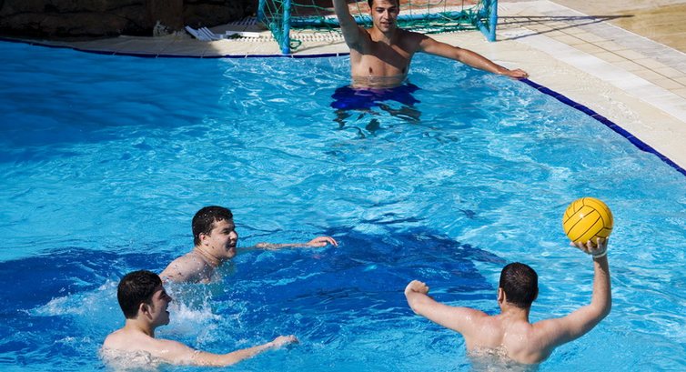 Бассейн великолепный.Вода в нем чистая и легкая.Плавать очень приятно .