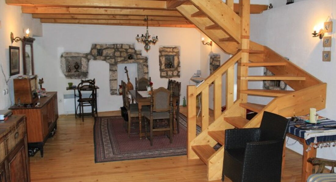 АРР: Інтер'єр у старовинному стилі успішно доповнений різними предметами антикваріату. Апартамент складається із двох поверхів. На першому поверсі - простора вітальня з розкладним диваном, повністю укомплектована кухня, їдальня, ванна кімната з душовою кабіною. На другому – 2 окремі спальні з французькою та роздільними ліжками. Кондиціонер, кабельне телебачення, холодильник, електрообігрівач, чавунний камін, тераса перед входом.