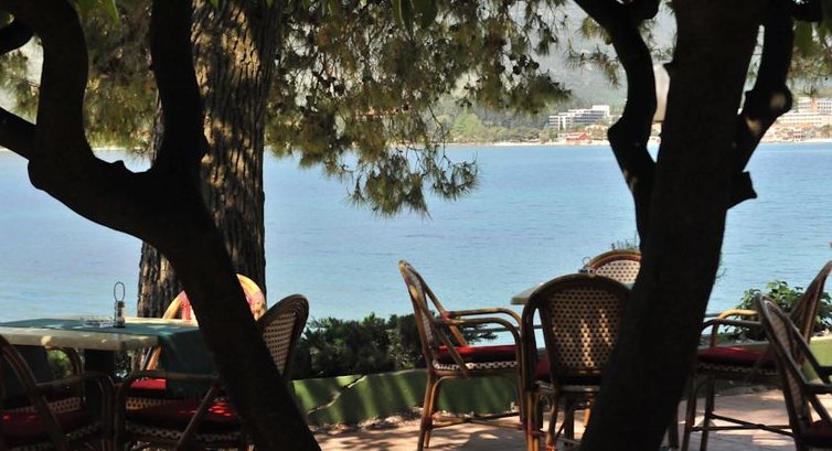 Пляж: 20 м від готелю, власний, галька-платформа, лежаки та парасольки – безкоштовно.