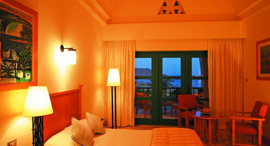 Отдыхали с мамой в январе 2012 года. Отель тогда входил в сетку Hyatt Rigency. Остались очень довольны отдыхом. Номера просторные, мебель, сантехника, все новое. Правда, из-за размеров номера в январе было прохладно спать, кондиционер, настроенный на тепло долго прогревал пространство. Территория очень ухоженная, вся в цветах и зелени. Есть открытый морской бассейн, но в январе температура в нем была гораздо холоднее, чем в море. Питание было великолепное для Египта. Вечером было интересно наблюдать, как английские дамы приходили на ужин в вечерних платьях и фамильных брильянтах. Первый раз на пляжном отдыхе за ужином я чувствовала себя в обычной одежде "не комильфо" :) Понравилось, что в отеле большое внимание уделяли безопасности (видимо из-за близости границы с Израилем). Также размещение в Табе удобно для экскурсионного посещения Израиля и Иордании. Брали обе экскурсии.