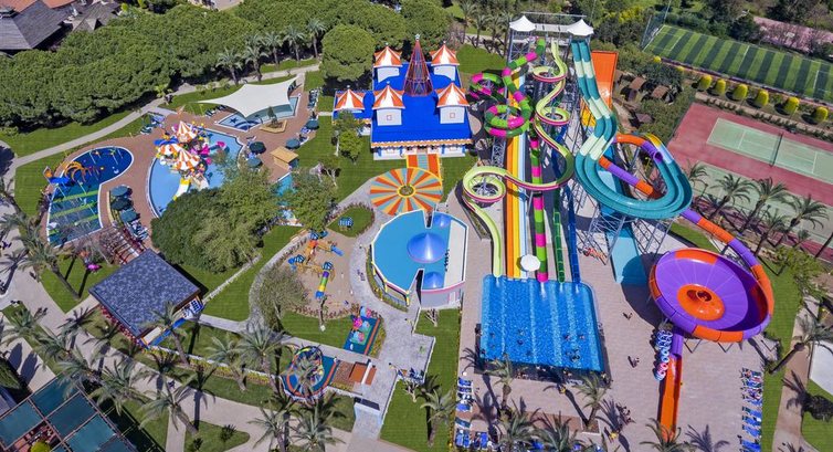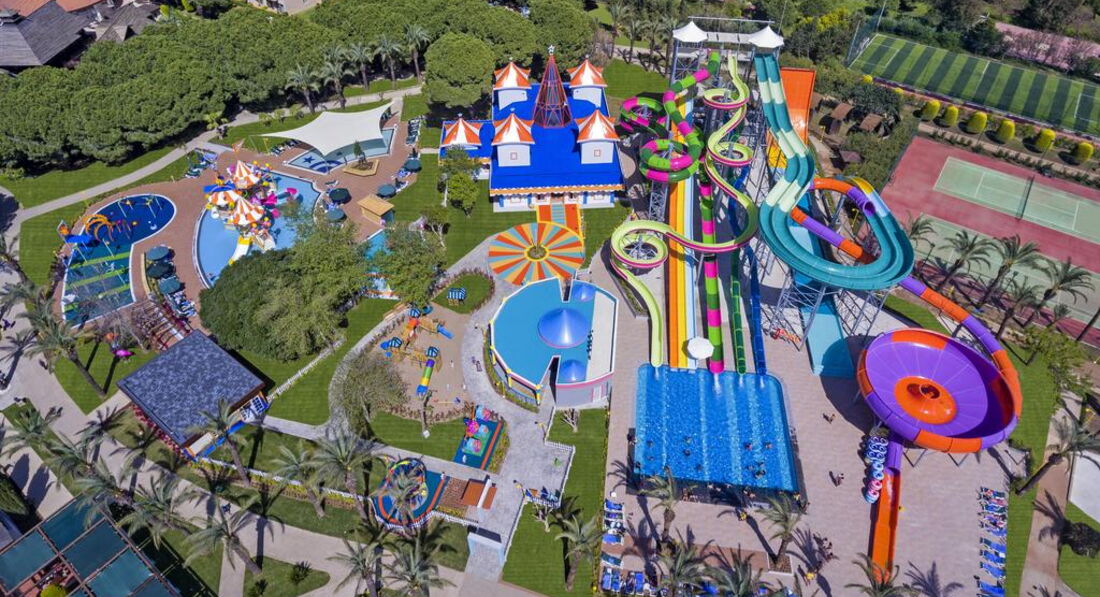 Тут все отлично - красивые ухоженные газоны, чистые тропинки и оригинальные бассейны, возле которых места найдут и те кто любит загорать и те кто любит тень. Три бара, но почему-то мороженое дают только в самом дальнем. три горки возле мини-клуба работают 10-00 до 17-00 с перерывом на обед.