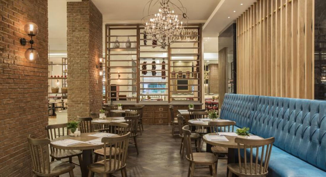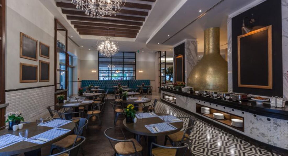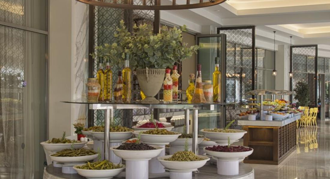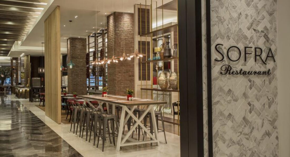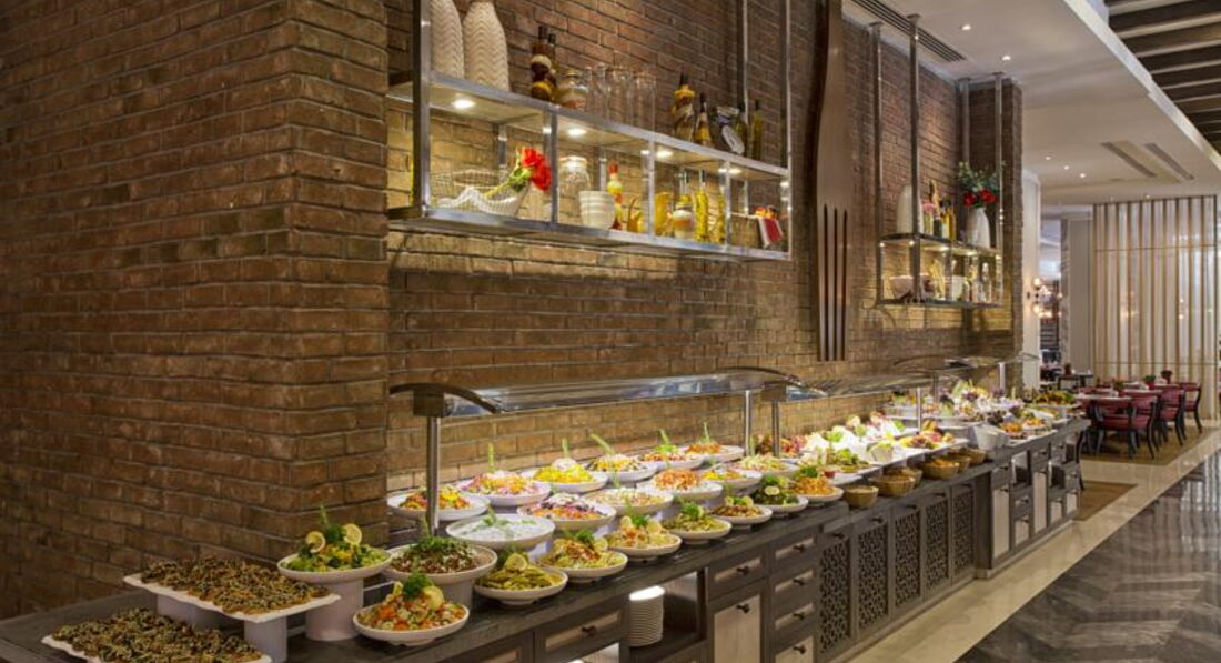 Бари та ресторани: головний ресторан розрахований на 800 осіб (критий, з кондиціонером, літня тераса, дитяче меню, дієтичне меню, дитячі стільці), лобі-бар (24 години), бар біля басейну (10:00-24:00), бар на пляжі (10:00-18:00), диско-бар (23:00-02:00), вітамін-бар (10:00-20:00) та ін. 6 ресторанів A la Carte: китайська, японська , італійська - платно; турецький, рибний, мексиканський - відвідування кожного ресторану безкоштовно 1 раз за час проживання, за попередньою резервацією.
