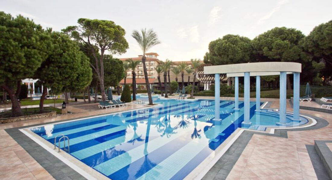Отель для комфортного, спокойного и размеренного отдыха. Спокойного, но не скучного. Все зависит от Вашего желания и настроения. Большая, действительно красивая и ухоженная территория. Прогулочные аллеи, фонтаны и бассейны! Нормальный пляж. Всегда чистые полотенца. В номере есть все необходимое. Чисто. Мы проживали в номере с видом на отель Венеция. Нас это вполне устраивало, так как хотелось повыше и утром потише. Вечером в номере не сидели: интересная анимация, музыкальные вечера у "Lobby" бара, SPA-комплекс, крытый бассейн и тренажеры - пожалуйста, на выбор! Ночью нам музыка и соседи не мешали. С питанием и напитками проблем не было. Выбор мясных и рыбных блюд был всегда. Фруктов тоже хватало. Утром можно было кашками побаловаться. Понравилось в ресторане Sunset, удобно расположен рядом с пляжем, выбор блюд и обслуживание - на уровне. А традиционные турецкие лепешки, сладости, кофе - все надо обязательно попробовать! А потом бегать, плавать, плавать и плавать, чтобы после "все включено" домой в форме вернуться. С персоналом тоже проблем не было. Английский, русский плюс язык жестов, улыбка - отличный отдых гарантирован! Мы отдохнули хорошо, чего и всем желаем!