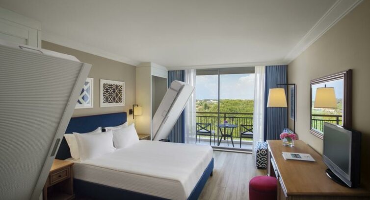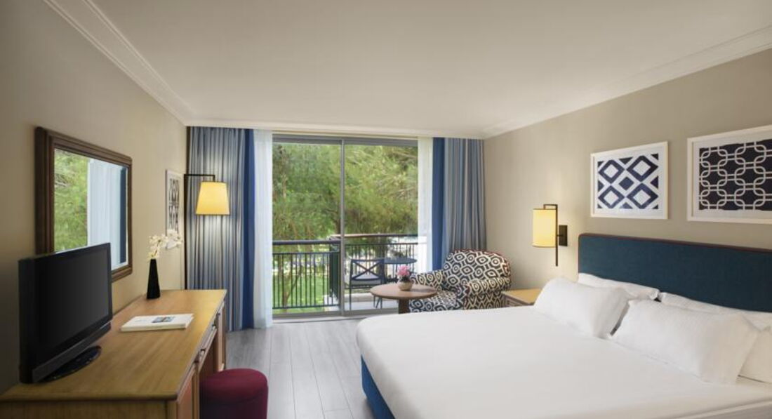Мы приехали утром, оставили вещи на рецепшене и пошли ознакамливаться с территорией.Территория очень большая и красивая с множеством бассейнов, баров и ресторанов. Заселили нас на 2-м этаже с частичным видом на стену)))) ещё и по ночам гремели посудой, пожив несколько дней, мы подошли на рецепшен и попросили нас переселить. Нам дали номер на первом этаже с видом на сад, очень красиво, ремонт и мебель достаточно новые, мини-бар пополняли ежедневно, к уборке претензий не было, мыльные принадлежности пополняли. Питание очень хорошее: очень много рыбы, мяса, фруктов, сладостей,мороженное, элитные напитки, для деток есть детское питание и диетический стол. Береговая линия широкая, заход в море хороший, вот только лежаки стояли немного далековато от моря, но нас не напрягало.