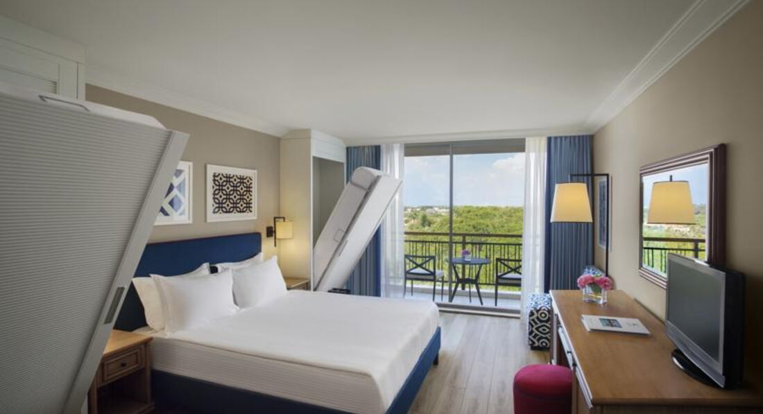 Понравилось, что в этом отеле полноценные дополнительные спальные места в виде кроватей-шкафов. То есть в убранном положении они поднимаются вертикально и места в комнате не занимают, зато спать гораздо удобней, чем на раскладных диванах.
