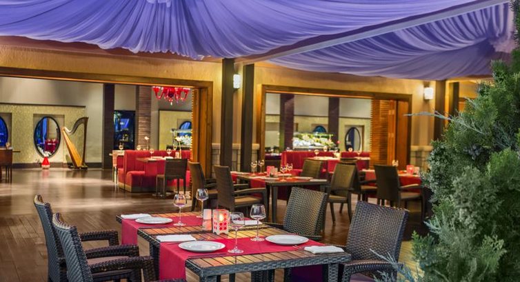 Бари та ресторани: головний ресторан розрахований на 152 особи (критий, з кондиціонером, літня тераса, дитяче меню, дієтичне меню, дитячі стільці), Spy Bag Bar (24 години), бар на пляжі (10:00-18:00), вітамін-бар (10:00-18:00) та ін. 6 ресторанів A la Carte (IC Hotels Green Palace): китайський, японський, італійський, турецький, рибний, мексиканський - відвідування кожного з ресторанів безкоштовно 1 раз за час проживання, за попередньою резервацією.