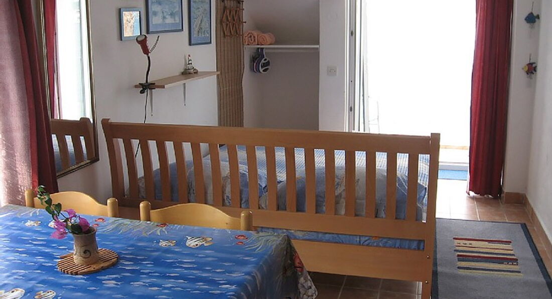 Невеликий кам'яний готель, у своєму розпорядженні має три поверхи, кожен з яких має окремий вхід та вид на море з тераси. Для розміщення пропонується двомісна студія на другому поверсі та апартамент на 5 осіб на третьому поверсі.