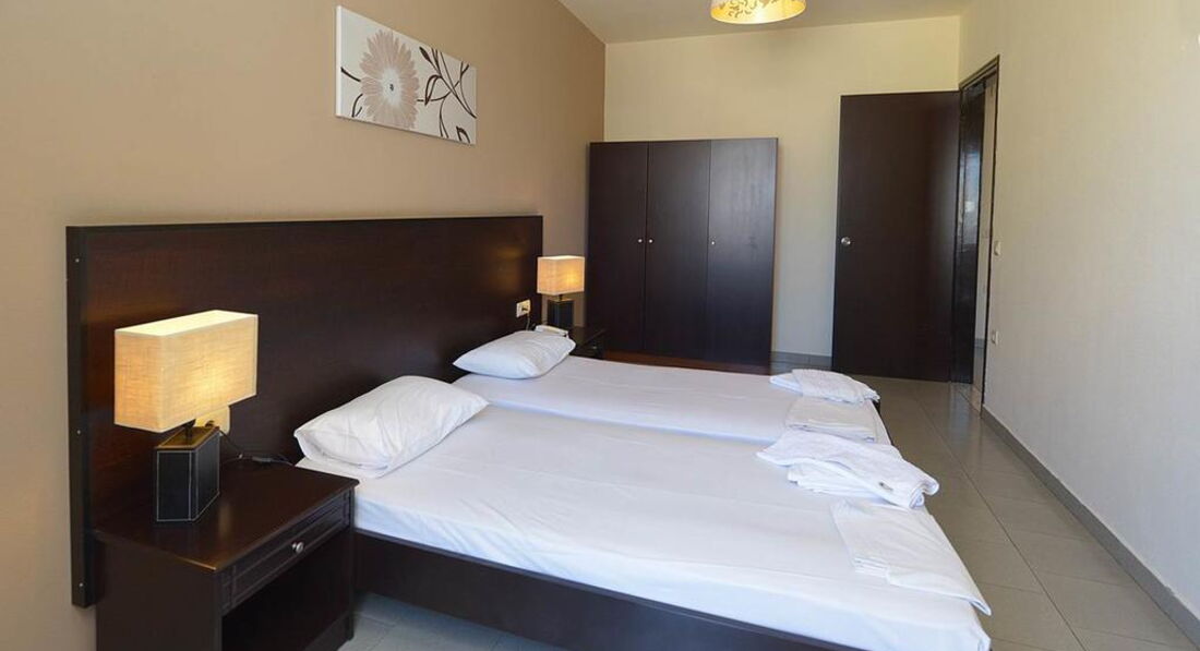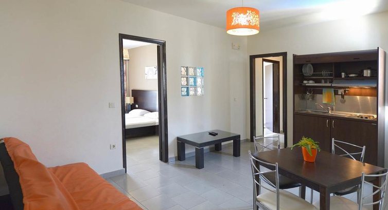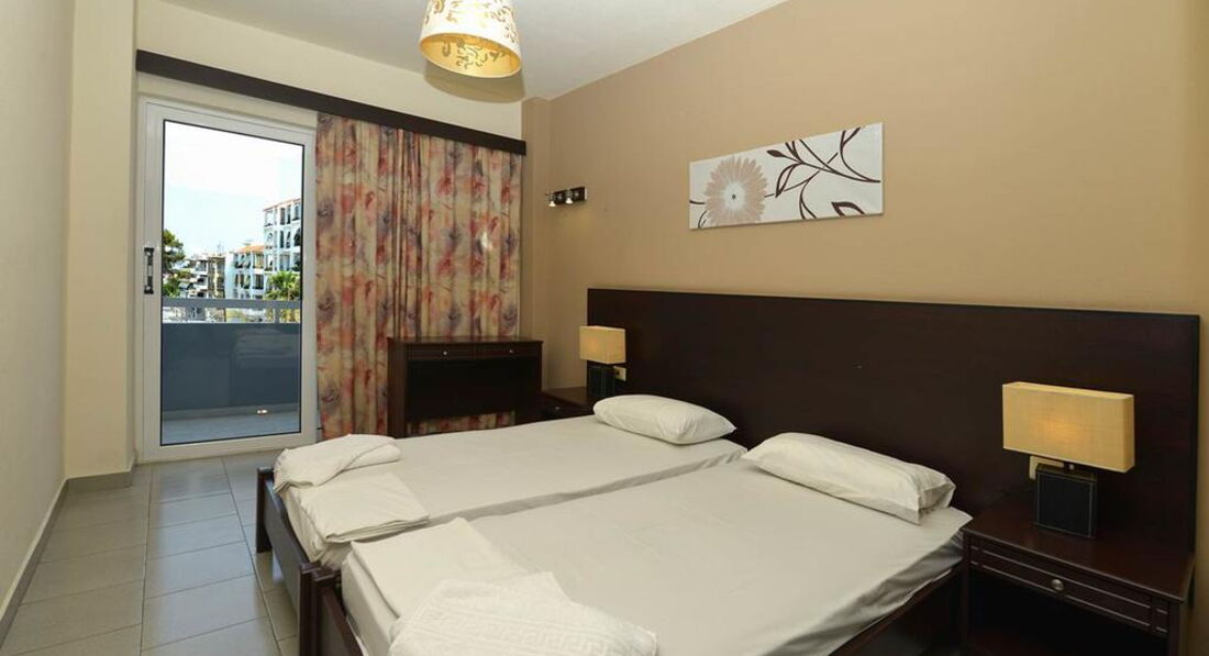 • Two Bedroom Apartment (55-80 м2, вид на басейн, місто; 2 спальні відокремлені дверима, вітальня, кухонний куточок з кухонним приладдям; балкон)