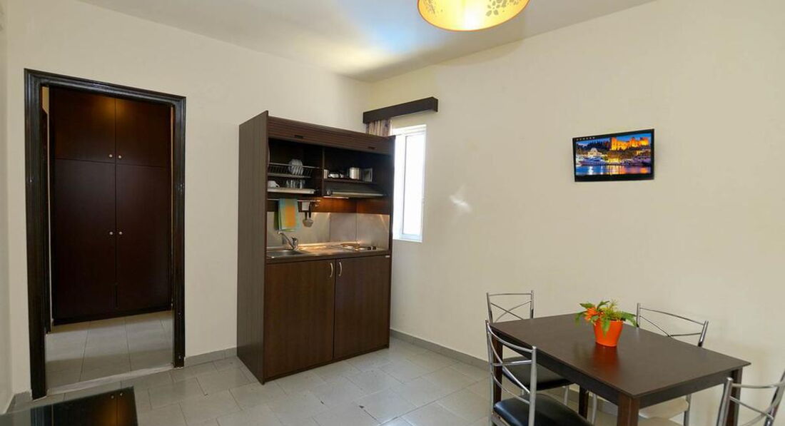 • One Bedroom Apartment (40-55 м2, вид на басейн, місто; спальня та вітальня відокремлені дверима; кухонний куточок з кухонним приладдям; балкон)