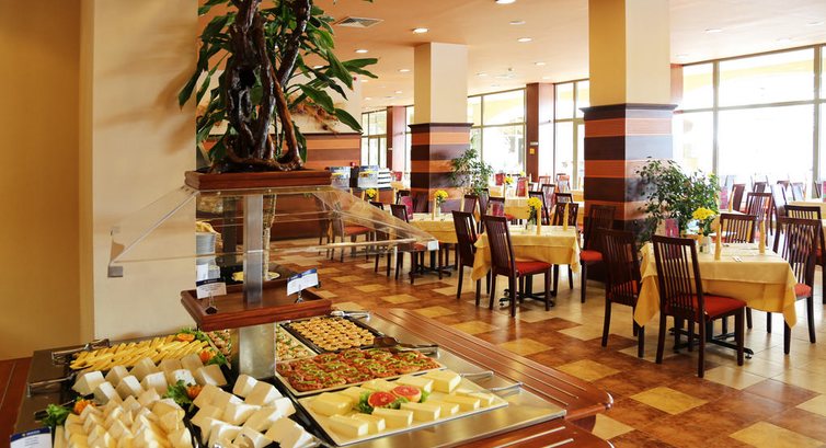 Питание. У нас было "всё включено", но в баре действует правило "2 коктейля в одни руки" - можете представить сколько приходилось подходить к бару, где всегда была очередь, многие жаловались и не только русские, что неудобно туда-сюда ходить, тем более многие были большими компаниями и все стояли в очереди, когда проще на поднос взять на всех и спокойно сидеть. Коктейли бесплатные не все, только те, что заявлены в списке, остальное платно, в списке 10 коктейлей и пиво, шампанское, а также газировка и соки. Коктейль дня - это коктейль из бесплатного списка, в других странах всегда что-то новенькое. Лобби-бар - это нечто! Уважаемые, сделайте зону для курящих отдельно, ну, невозможно сидеть с детьми, которые едят и тут же со всех сторон курят! Я лично не курю и муж тоже, искали места подальше, но мест свободных особо не найдёшь, уж хоть куда-то присесть. Дальше за едой очереди, стоит 1 повар и готовит пиццу, гамбургер, хот дог, картошку фри, очередь собирается длинная, засекали время - полчаса за пиццей, и та оказалась непропечённой, тесто толстое, а края горелые .... как может 1 человек обслужить столько народа, которые хотят перекусить?!Отсюда и качество еды хромает! В витрине можно было взять без очереди колбасу салями, огурчики, кильку, сыр и всё! Так народ регулярно ходил на обед и ужин, днём не наешься! У каждого корпуса своя столовая, ресторана а-ля карт нет, есть "элитный" платный ресторан и бар, которые пустовали))))) Получается выбора, где поесть, нет. По еде конкретно: рыба, курица, баранина, говядина местами были, но в 1-2 варианте, либо тушённое, либо жареное. Пару раз был шашлычок на шпажках. Морепродукты есть, но в маленьком количестве и не всегда вкусные: кольца кальмаров через раз съедобные, креветки давали 2 раза, первый раз очень мелкие, как семечки, перед отъездом нормальные - наелись, мидии мелкие и нам не понравились на вкус, салат из морепродуктов ещё ничего, а, вот, креветки в тесте или кляре были 2 раза и их сметали моментом, я только успела 1 раз взять. Салат был типа греческого каждый день, несколько раз наподобие нашего оливье и ещё 1 болгарской кухни с картошкой крупной - не поняли что это. Был день Испанской кухни, вот, мне понравилось мясо, салатики! На гриле мясо жарят, но очередь стоит и из-за спешки поваров не всегда прожаренное, как и яйца на завтрак. Детский стол есть отдельно, макароны, картошка и рис каждый день. Сладкое - больше торты пекут, пирожными было бы удобнее брать, мусс, желе, мороженное - это рай для сладкоежек, а мне больше приглянулся стенд с орешками и сухофруктами, всегда к чаю брала. В обед есть супчик, один раз был лапша, дочка наелась, сказала "Вкусно". Завтраки: первые дни был йогурт, но почему-то польский, хотя все утверждают, что местный "кисло-мялко" очень вкусный, в магазин за ним не ходили, поэтому не пробовали, последние 3 дня йогурт не давали. Круасаны вкусные, но если придёте после 9 рискуете их не попробовать! Яйца, сыр, колбаса, бекон, выпечка, овощи, паштет, кстати, я не любитель паштетов, но здесь ела на завтрак с удовольствием! Фрукты: яблоки, груши, бананы, апельсины, арбуз не вкусный, дыня зелёная, но пару раз была сладкой, ананас не созрел ещё, черешня первые дни была не очень, потом сладкая, клубнику давали несколько раз, очередь тут же, но плохо промытая, приходилось брать бокал воды и мыть в бокале. Мороженное можно было взят