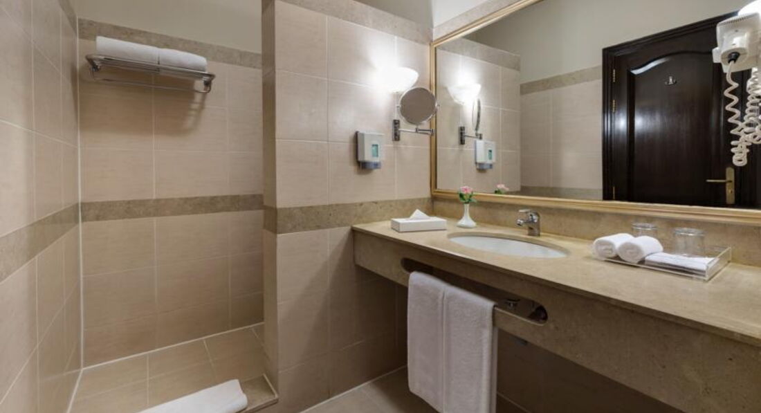 Отель выбрали по совету друзей,плюс цена немного упала,да и отзывы были в основном положительные.На место попали ,когда завтрак уже закончился,но заселили в общем быстро,меньше чем за час.Номер дали неплохой с видом на внутреннюю территорию,людей сейчас не так много,поэтому заселили не так далеко от пляжа,есть номера значительно дальше,но дорогу все равно надо переходить,это наверно единственный минус за весь отдых.Пляж просто прекрасный,большой,песчаный.Около восьми мы уже были там и свободные шезлонги были всегда.Море прозрачное,комфортной температуры,есть красивые островки рифов и подводный мир очень красивый.Небольшие разноцветные рыбки попадаются целыми стайками,видели скатов разных размеров,один раз небольшую мурену,так что маски и ласты не забывайте,тем более,что тут все намного дороже,а до города далеко,около 30 км и на проезд туда тоже прийдется потратиться,хотя на автобусе от отеля намного дешевле,чем на такси,но все же.На пляже есть бар,где можно неплохо перекусить,для тех,кто хочет по-больше поплавать и по-дольше позагорать и не идти в ресторан на обед и не тратить на это время.Питание в отеле отличное,достаточно разнообразное и вкусное,много мясных блюд и курицы,овощей в разном виде,очень вкусно готовят рис,а утром понравилась свежая,выпечка.Кому этого мало,то есть дополнительные рестораны по предварительной записи.Нам очень понравился гриль-ресторан,и рыбу и мясо там готовят очень прилично.Обслуживание на уровне,ходят предлагают напитки,все вежливые и опрятные,приятно смотреть.На лобби всегда есть кто-то русскоговорящий.Территория отеля чистая и ухоженная,есть зеленые места,разные зоны отдыха,горки и бассейны,по правда мы туда не ходили.Вечером проводят разные представления,выступают свои и приглашенные артисты,живая музыка,в общем скучать не приходилось.Кому этого мало ,то всегда можно куда-то поехать.Мы брали прогулку на катере в открытом море и поездку в Луксор для разнообразия.У{удалено модератором: несанкционированная реклама}Народ тут отдыхает разный,много из западной Европы,русскоязычных намного меньше,арабы тоже есть.Местные симки купили еще в аэропорту,знали,что будем выезжать за пределы отеля,реально не дорого и удобно,в отеле слышали ,что гид предлагал уже в два раза дороже.Много людей тут оьдыхают не первый раз,это говорит о многом и я с ними согласна в общем,хотя как по мне,то намного интереснее увидеть что-то новое.А так отель конечно рекомендую всем ,и пожилым и семьям с детьми.