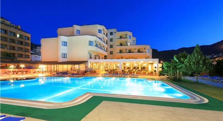Вчера прилетели из этого отеля, пока свежи воспоминания решила сразу оставить свой отзыв. Отель тянет максимум на 3*, до 4* надо до расти. Приехали в отель где то в 22:30, было 60 человек в наш отель. Заселили сразу, номер достался просторный и с балконом( были в двоем с ребенком). Легли спать, утром когда встали решила принять душ не оказалось шторки в ванной ( как потом выяснилось у половины отеля не было этих шторок, выбивали со скандалом) плюс ко всему в самой ванной и на полу было много длинных волос видимо от предыдущих хозяев))). Так как я человек не скандальный решила не портить настроение себе , подумала что сегодня придут и прибирут в нашем номере, но за 10 дней так ни кто ни разу пол у нас в номере не мыл и да же не подметал. Мы с ребенком ходили в сланцах. Мы в номере не находились , так что это мы то же пережили!!!! Постель за 10 дней так же ни кто ни разу не поменял. Горничная приходила только заправлять постель и менять полотенца. Кондиционер работал хорошо. Номер у нас был 1214 напротив лифта, часов до 3 ночи уснуть вообще не реально, люди ходят бесконечно. В ресторане на полу , под столами грязь , первое время ни кто да же не подметал . Потом правда кто то пожаловался и появился мужчина с веником! Питание в отеле можно сказать хорошее, голодными не ходили. Повора готовят вкусно видно что стараются, молодцы!!!! Территория отеля маленькая , но уютная, зеленая. Анимации нет ни какой, скукота смертная. В четверг один раз нам показывали огненное шоу. Пляж есть платный и бесплатный. До пляжа идти мин. 7. Пляжных полотенец в отеле не дают! На бесплатном на полотенчике , на песочке, там полно окурков. Противно!!! На платном, покупаешь коктейль и лежак твой на целый день , к примеру бутылка пива и стакан Спрайта стоят 25 лир (приблизительно 450 руб). Ездили в Мармарис на маршрутке , гуляли по набережной , Смотрели поющие фонтаны( красиво, понравилось), посетили крепость султана Великолепного. Есть аква парк в который можно то же самостоятельно доехать. В общем есть что посмотреть и что посетить. При выезде из отеля в 12:00 сдали ключ и с нас срезали браслеты , а забрать нас должны были в аэропорт в 16:00, все стали возмущаться что сидеть еще долго , потом до аэропорта ехать 2 часа , дети голодные будут. Менеджер отеля на отрез отказался кормить нас . Правда потом отельный гид с кем то связался и менеджер согласился нас покормить , только без напитков!!! Хотите покупайте за доп.плату. Вообщем как то так, в целом за такие деньги бывало и лучше!!!!