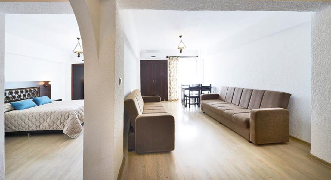 В принципе согласен с отзывами, оставленными предыдущими отдыхающими. Постараюсь рассказать свое впечатление о самом отеле и немного затронуть отдых в Мармарисе с ценовыми выкладками. Итак, мы взяли Family room, чтобы было именно две комнаты. Нас поселили в корпусе с номерами 3ХХ. Из основных плюсов не в порядке приоритета:
