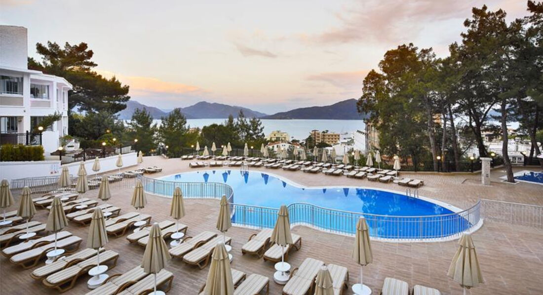 Отдыхали с маленьким ребенком в июне 2014 года. Отель средний, по размещению не четверка конечно, но общая территория отеля супер, вид прекрасный, персонал отличный, еда вкусная, уезжать не хотелось совсем, ощущение дома присутствовало))) Мармарис очень красивый город. Летали от Интуриста, все понравилось, отельный гид супер. Все рассказал, и где, что купить, и про экскурсии, и вообще каждый день интересовался все ли в порядке, очень приятный парень. Спасибо!!! Анимация на английском и юмор тоже не наш, но в целом ребята старались, каждый день что-то новенькое придумывали, молодцы)))