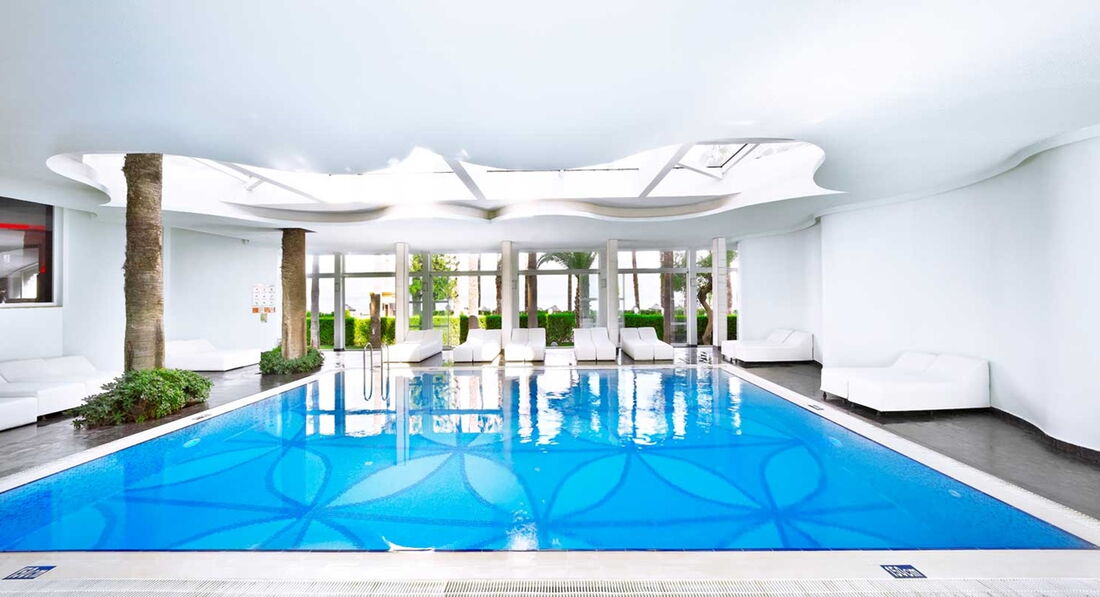 Отель сам большой и красивый, территория ухожена и красива. Необычный интерьер.Есть 1 большой бассейн, 1 бассейн с прикольными горками и бас для детей, расположены в разных местах, 1 крытый бассейн, и сауна (бесплатно), хамам.