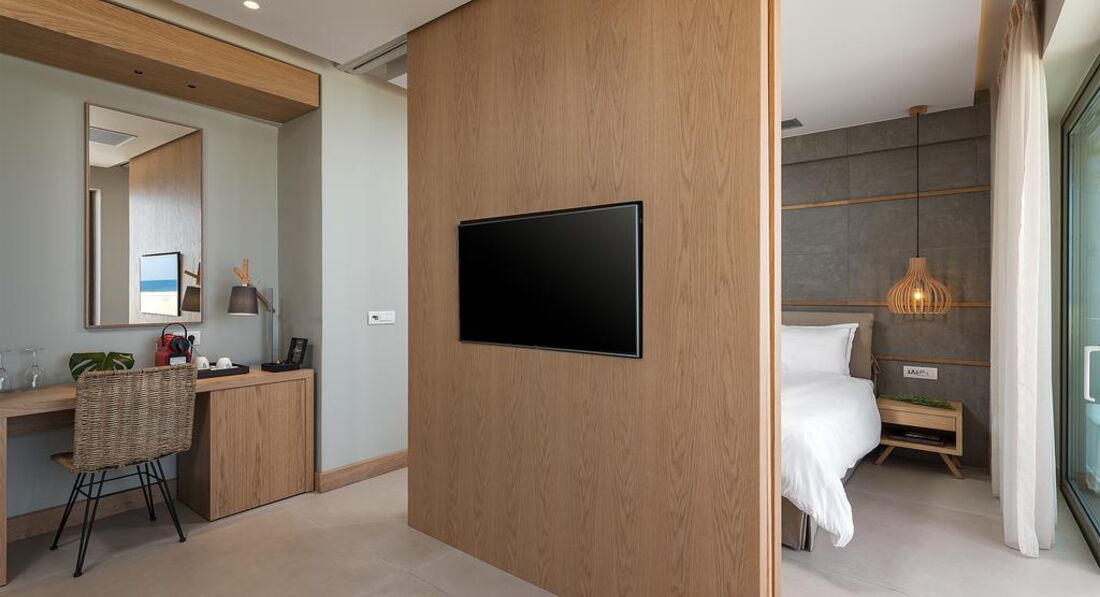 • deluxe suite 1 bedroom (вид на море, спальня з окремою вітальнею (можливе дворівневе планування), осн. ліжко - двоспальне або 2 односпальні, дод. - софа, макс. 4 чол., 40-45 м2)