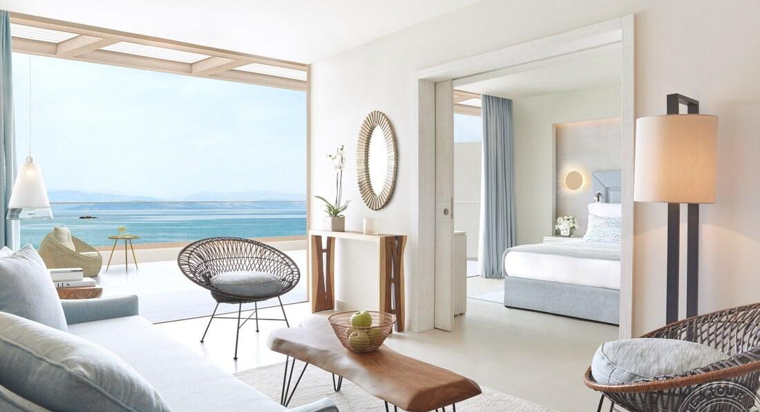 • Deluxe 2-bedroom suite SV (вид на море, 2 спальні та вітальня з дверима, осн. ліжко – двоспальне, дод. – 2 односпальні, софа, макс. 4+2 чол., 85 м2), балкон