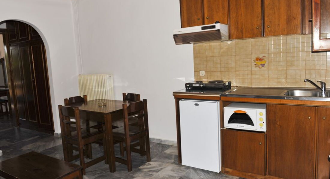 Всього 17 номерів: Studios (~30 кв. м), Apartments 1-Broom (~40 кв. м), Apartments 2-Brooms (~70 кв. м). Типи номерів: Studios Однокімнатні номери. Кухня, стіл, розкладний диван, 2 односпальні ліжка. Apartment 1-Broom Вітальня та спальня. У вітальні - кухня, стіл, розкладний диван. У спальні – 2 односпальні ліжка. Apartment 2-Brooms Вітальня та 2 спальні. У вітальні - кухня, стіл, розкладний диван. У кожній спальні по 2 односпальні ліжка.У номері: Балкон/тераса Ванна/душ Кондиціонер за доплату Кухня: ел. плита з 2-ма вічками, духовка, чайник, посуд Радіо Супутникове ТВ ТБ Телефон Фен Холодильник Чайник