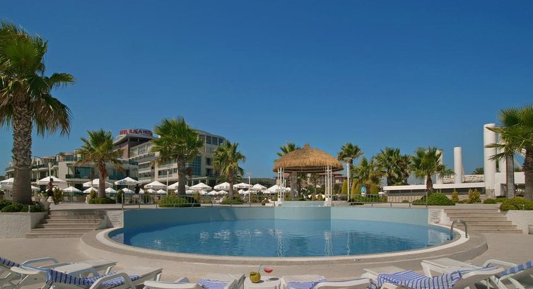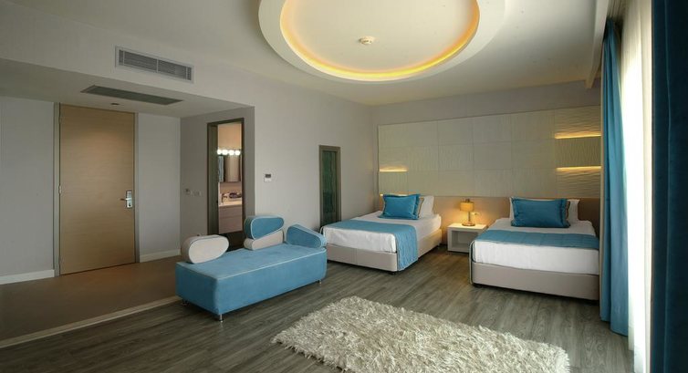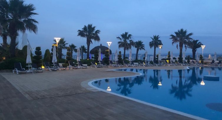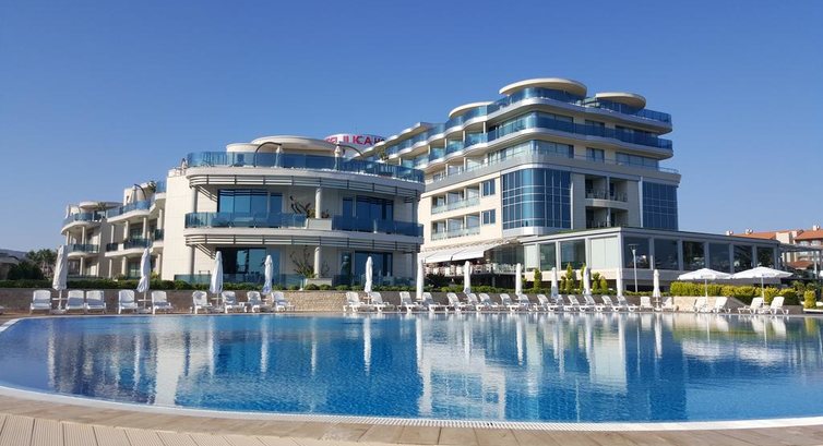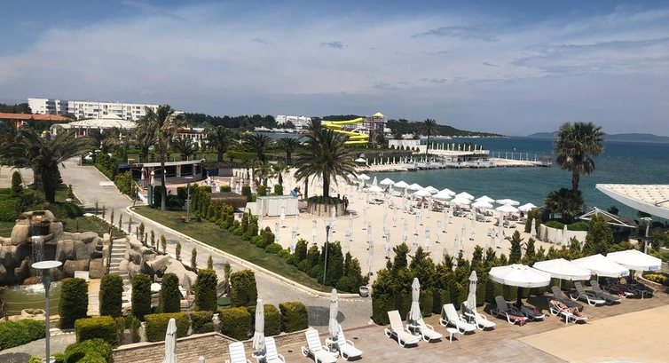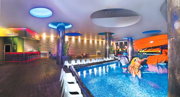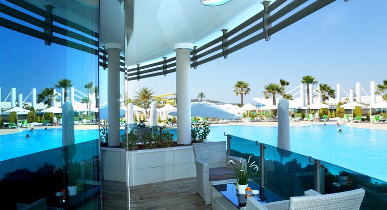 Територія та послуги: • Аквапарк (платно) • Відкриті басейни: 3 • Дитячий басейн • Криті басейни: 3 (прісна/морська/термальна вода) • Водні гірки: 6 • Бари: 3 • Конференц-зали: 6 (10 – 400 чол.) • Інтернет (послуги готелю) • Wi-FI у лобі • Магазини • Кабінет лікаря • Пральня Розваги та спорт: • Дискотека • Тренажерний зал • Настільний теніс (платно) • Більярд (платно) • Водні види спорту (платно) • Дартс • Салон краси • SPA-салон • Масаж (платно) • Сауна (платно) • Турецька лазня (платно) • Хамам (платно) • Джакузі (платно) Для дітей: • Дитячий майданчик • Дитячі водні гірки, батути • Дитяче меню у ресторані • Міні-клуб 4-12 років • Няня платно Живлення: НВ (напівпансіон) - шведський стіл. Розклад: Сніданки 07:30-10:30, Вечері 19:30-21:30. Пляж: Власний піщано-гальковий пляж. Пірс обладнаний парасольками та шезлонгами: безкоштовно. Бар на пляжі: платно.