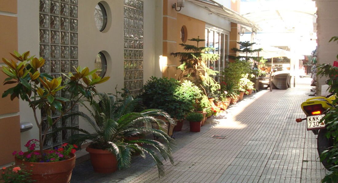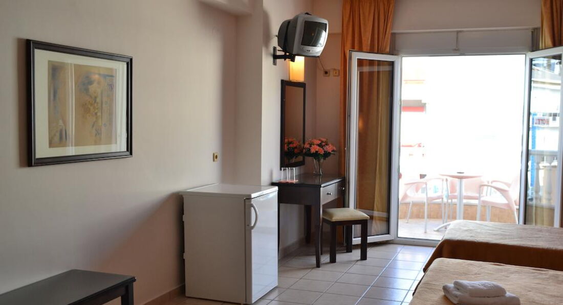 Готель розташований у центрі містечка, прямо на березі моря. Побудований у неокласичному стилі. Нещодавно відреставровано. Тут гостям пропонують поринути у затишну атмосферу відпочинку. Неподалік від готелю знаходяться всілякі магазини з сувенірами, модні бари і традиційні грецькі таверни. Повністю оновлено 2008 р, 2011 року оновлено 4-й поверх.