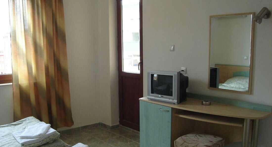 Очень хороший отель,даже не ожидали от отеля 2 *!Есть всё необходимое:душ,туалет,балкон,холодильник,телевизор,кондиционер,также приятным сюрпризом было наличие геля для душа,шампуня,мыла и пару бутылочек питьевой воды.В номере убирали каждый день.Очень приветливый персонал и отличные хозяева!Заселили сразу по приезду.Немного подкачали завтраки,из 10 дней 5 дней давали одно и то же,а так повар готовит очень вкусно)Очень хорошее расположение,до моря идти 3 минуты,рядом остановка,гипермаркет. В общем,очень хороший бюджетный отель для тех,кто хочет спокойно отдохнуть ,подойдёт и для отдыха с детками) В Болгарии отдыхали первый раз,и нам ооочень понравилось!!!