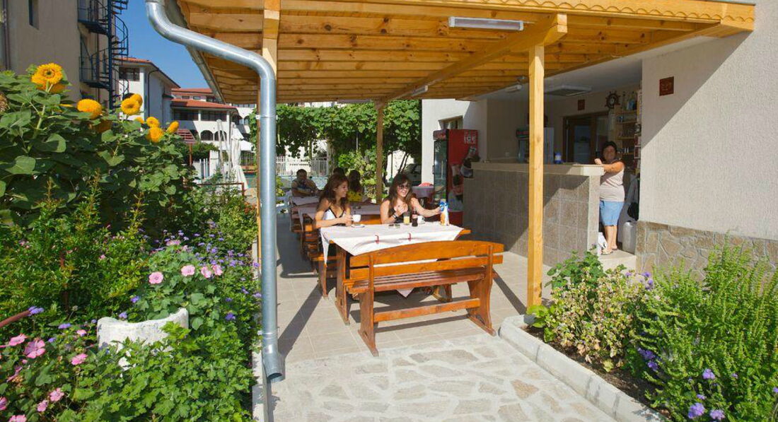 Если вы хотите экономно и комфортно отдохнуть, то вам сюда. Мы из Беларуси, в этом году отдыхали в Болгарии впервые, очень понравилось. Хотя у отеля нету отзывов, мы решили рискнуть и не прогадали. Отель находится в 2 мин. ходьбы от моря, что очень порадовало. По началу казалось, что можно прогуляться и 15 минут, но если вы приехали на море, то лучше брать отель первой линии. Если же вас устраивает бассейн, то это любая линия. И на первой линии некоторые люди проводят больше времени у бассейна, но мы ехали на море, бассейн может быть и дома. У этого отеля бассейна нет, главное море рядом. Разместили нас в отель сразу по приезду, а приехали мы в 8 утра, очень доброжелательные хозяева отеля, мы не ожидали даже такого гостеприимства. Такое ощущение было, что мы приехали к родственникам. Персонал тоже на высоте, все вежливые, отзывчивые, общительные, хорошо говорят по-русски. Номер убирали каждый день, кухня хорошая. У нас были только завтраки, обедали мы тоже там, за обед выходило около 15 евро на двоих, дешево, всегда оставляли чаевые. Вечером мы в основном где-то гуляли, поэтому ужинали в других местах. Ездили в Несебер, там очень красиво, советую не брать экскурсию, а съездить самим, не далеко от отеля есть остановка, 2 лева проезд. Святой Влас тоже не далеко, мы прогуливались пешком. Еще один плюс отеля, что он находится в северной части Солнечного Берега, в центре очень шумно и весело и лучше туда прогуляться, чем там жить. Хочется сказать огромного спасибо хозяевам отеля и всему персоналу, благодаря им наш отдых был замечательным. Надеюсь мой отзыв станет кому-то полезен.