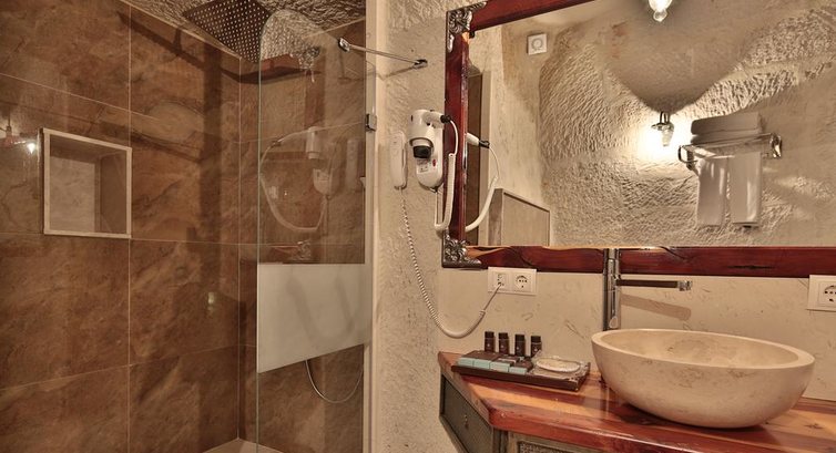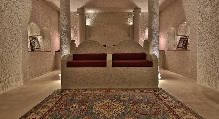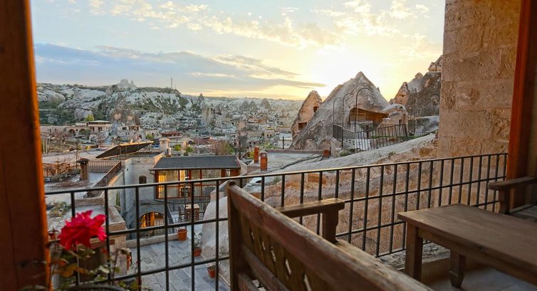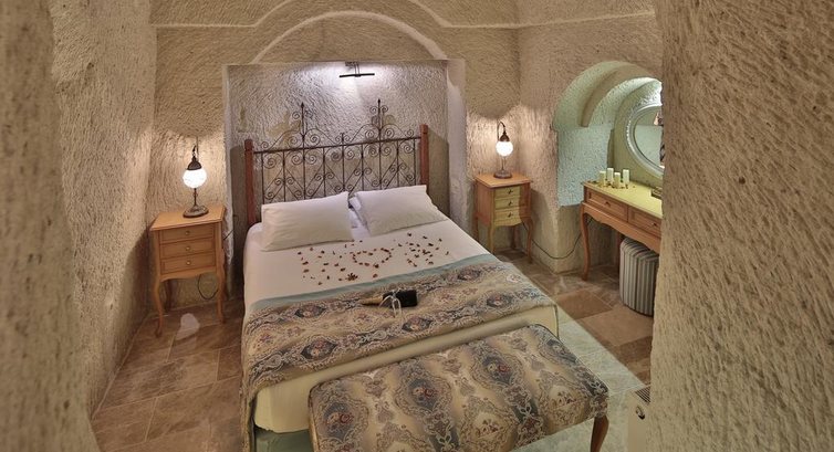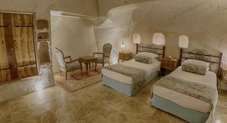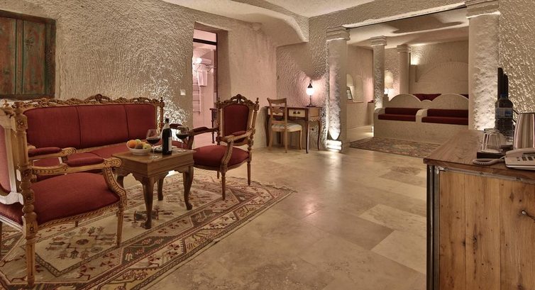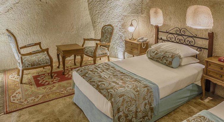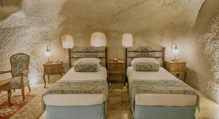 Сімейний готель Imperial Cave вирубаний у вулканічній породі, що утворює «каміни фей» - особливість ландшафту, що робить Каппадокію унікальним місцем.