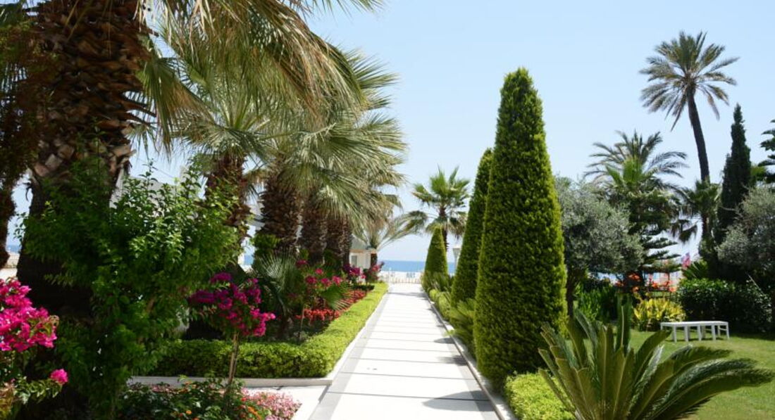 Отель небольшой, территория ухоженная но на этом плюсы и заканчиваются. Номера не большие, по балкону муравьи пешком ходили, полотенце большое одно на двоих. Но территорию и персонал можно пережить, а питание это особая тема. Желудок просто отказывался есть салаты с майонезом на жаре. Мяса не было вообще, курица жареная правда была , 1 раз индейка и скумбрия жареная через день. Запах горелой рыбы по отелю в жару представьте себе сами. Из фруктов только яблоки и резанные апельсины, сладкий стол не вызывал желания как токовой, с пирожных просто текла вода. Мы были в Турции не первый раз и такого я никогда еще не видела. Ресторан а-ля карт рыбное издевательство 6 колец кальмара на двоих и пережаренная рыба, мы просто встали и ушли голодные. Анекс тур тоже разочаровал записались от них на поездку так они даже город перепутали, благо мы успели увидеть что едем не туда и вышли. Перед нами не то чтобы не извинились, даже слушать не захотели. Не советую