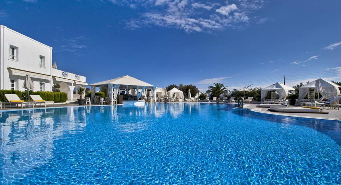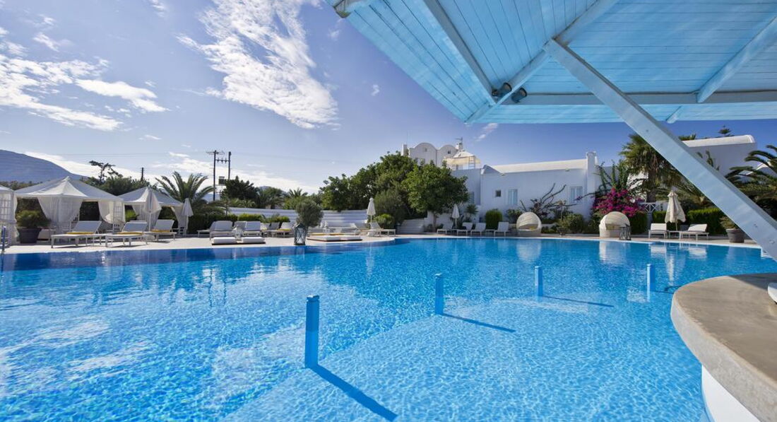 Розташування: Готель розташований за 2,5 км від аеропорту, за 12 км від порту Атініос і за 8 км від столиці Фіри.