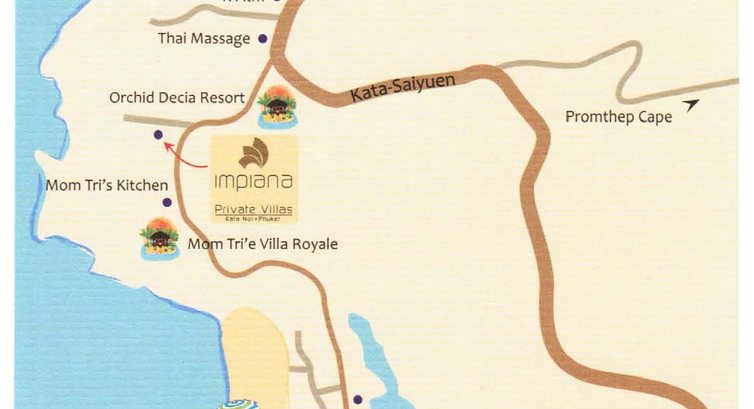 Розташування: на північній остаточності пляжу Ката Ной, на скелястому березі моря, 200м від пляжу і 50 км від аеропорту.
