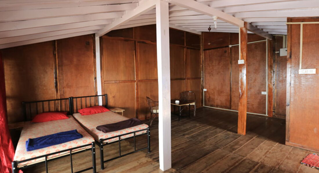После скандала и требования переселить нас в другой номер, нам предложили номер в другом корпусе, который расположен немного выше отеля. Там номера очень даже ничего. Обитые деревом стены, нормальный санузел, балкон в номере, кондеционеры. Кстати еще одну кровать все таки принесли)) с соседнего пустующего номера Не понимаю почему нельзя этого было сделать раньше.