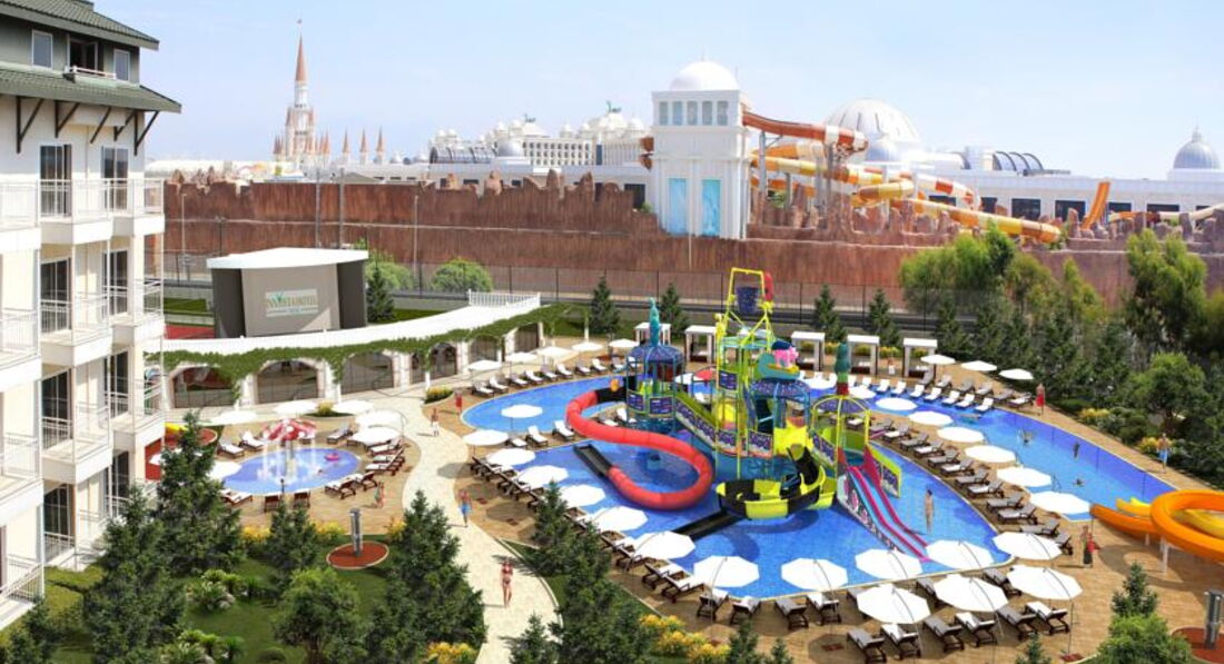 Отель расположен в 7 минутах ходьбы от The Land of Legends. Там отличный аквапарк, шоу дельфинов, морж - спортсмен, остров тигра, пингвины. Масса, масса горок и развлечений. Цена нам была 38 долларов на день. Вечером шоу: танцующие, цветомузыкальные фонтаны, парад сказочных персонажей, парад лодок. Классно! Мы ходили несколько раз!!!!! В отеле проходят выступление артистов. Мот, Тимати, Лазарев, Лепс, Араш. Это не полный список фестивальных гостей. Мы ходили, когда выступал Мот. Интересно и главное БЕСПЛАТНО.