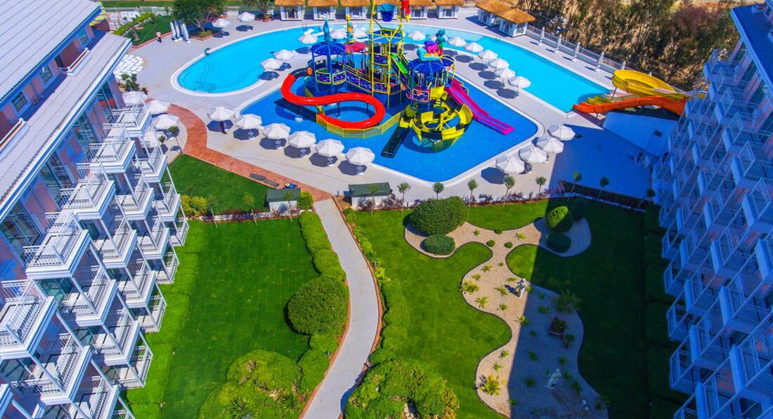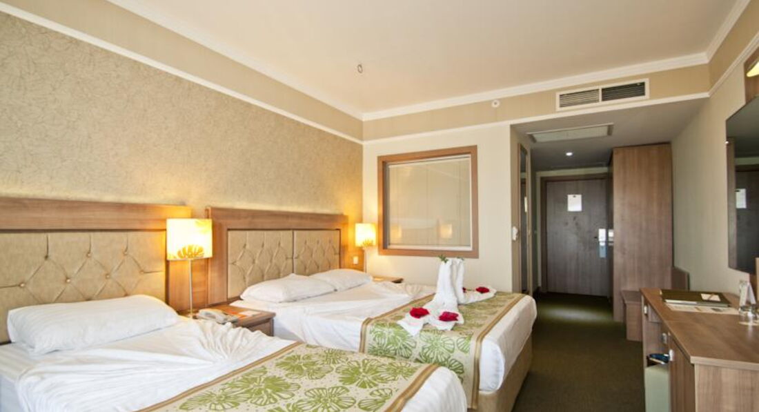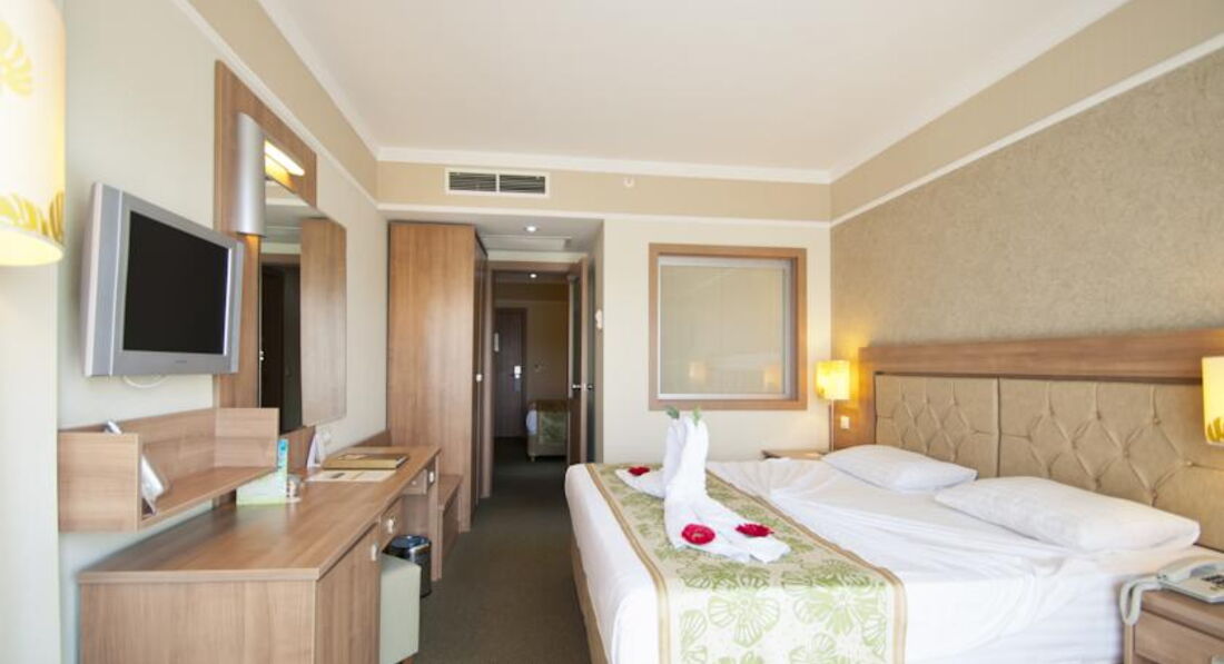 Мы отдыхали автобусным туром и попали в этот отель на 3 дня в конце нашего отдыха. У нас должен был быть другой отель, а этим нам его заменили в последний момент. Сперва очень расстроились, но когда мы в него попали, то поменяли мнение. Отель нам очень понравился, чисто, красиво, весело. Номер достался с двумя комнатами на 4 человек, хотя отдыхали мы парой. Хорошая мебель, чисто. Очень понравилось питание, огромное разнообразие блюд для детей и взрослых. Для деток есть отдельное место для еды, со специальной яркой мебелью и посудой. На тот момент мы уже побывали во многих отелях Турции, но питание здесь было лучше всего. Интернет бесплатный только на ресепшене. Рядом с бассейном есть небольшая детская площадка. Была и анимация - днём у бассейна, вечером сначала мини-диско для детей (каждый день одинаково), а потом для взрослых различные шоу, мы попали на фокусы, танцы и пенную вечеринку. Аниматоры повеселили, хорошие ребята. Пляж далековато, возят на автобусе. Пляж песчано-галечный, места хватало всем. В отеле были в основном немцы и русские, многие с детьми. Есть несколько бассейнов, несколько горок, которые были закрыты почему то. Рядом с отелем есть несколько магазинов. Жаль в этом году этого отеля нет в предложениях ни у одного туроператора