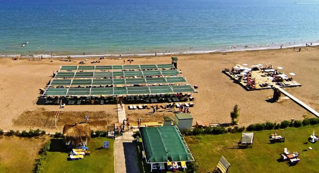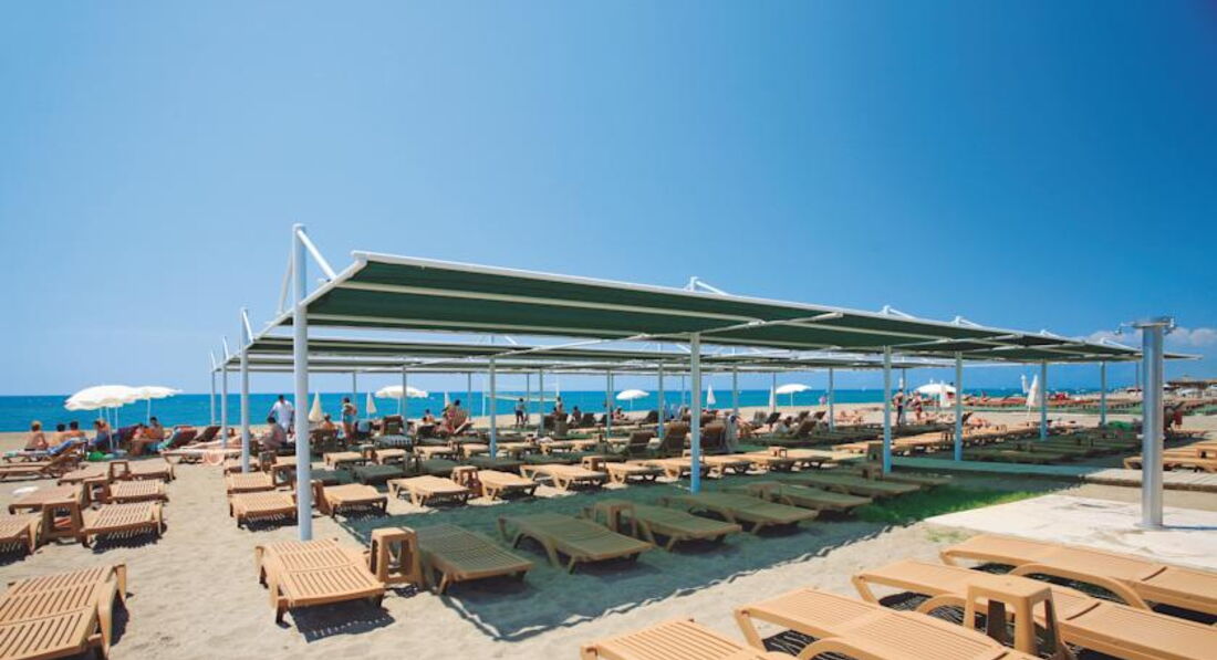 Официально открылся 1 мая. В этот день его и посетили с ознакомлением. Лежаки с навесами. Перекусочный бар (покушать был выбор), бар с напитками. Немного засорен, но это начало сезона. На пляж от центрального входа часто ходит шаттл-басс. Подлётное время составляет 4 минуты. Можно ножками, время не засекал.