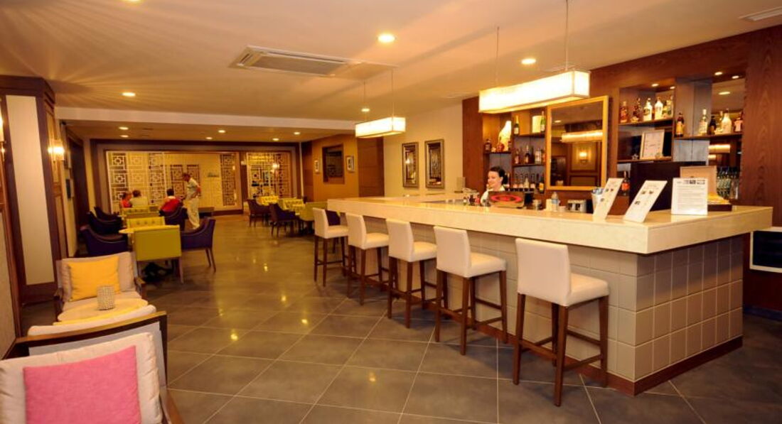 Алкоголь обычный турецкий. При покупке тура написано было ультра всё включено, иностранный алкоголь, бутылочное пиво. Нет это враньё. Пиво из баров видимо безалкогольное с 2 бокалов не хмелеешь. Попросили сделать лёгкий коктейль, набодяжили пол стакана водки с сиропом.