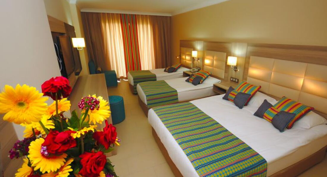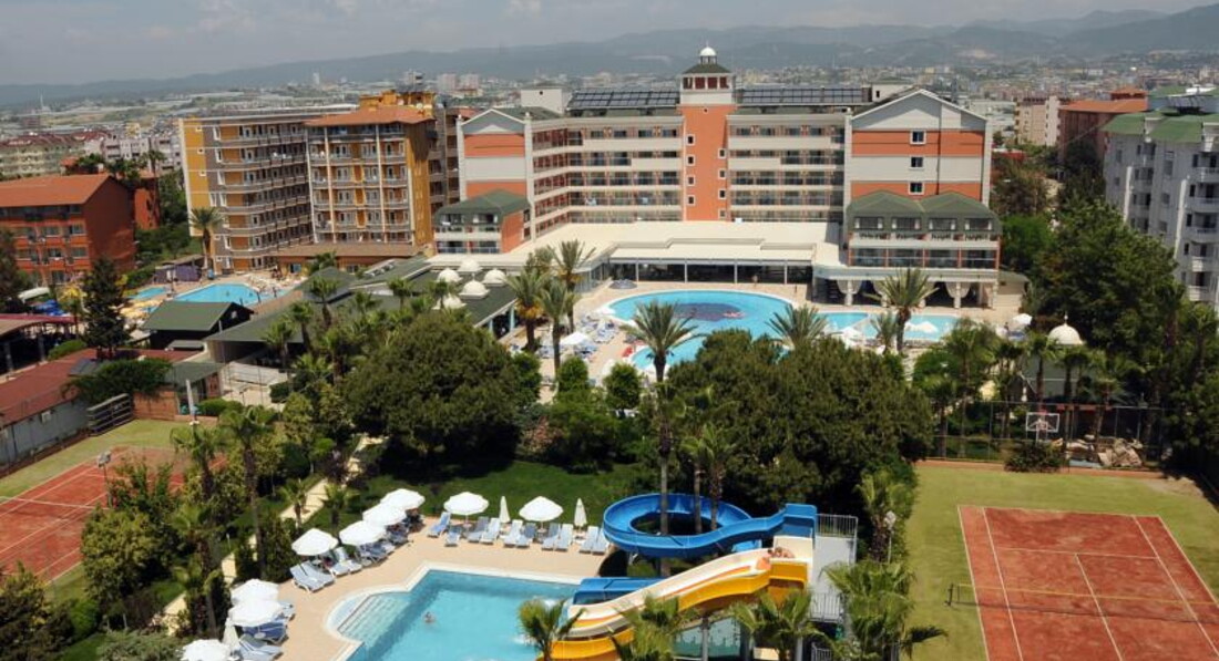 Отдыхали в мае 2017, 2 взрослых+ребенок подросток В Турции далеко не первый раз. В Алании во второй, обычно предпочитали Кемер. Всегда ездим на майские. Первый плюс- очень повезло с погодой- такого теплого моря не было за последние 10 лет. Теперь об отеле- перед поездкой читали много отзывов, практически все положительные и они подтвердились. В целом отдых удался по всем показателям - Хотя отель позиционируется как экономичная пятерка- оценку пять он заслуживает стопроцентно. Заселение - мы приехали во время ужина, поэтому нам сразу ( даже подгоняя непонятливых) надели браслеты и "заставили" пойти на ужин. Ужин уже заканчивался, но еды было достаточно. Заселение было сразу как поели. Номер достался с видом на дорогу. Его плюс- это не солнечная сторона, минус- шум проезжающих автомобилей ( при открытых окнах) и песня минарета в 5 утра. Еще плюс - на троих у нас была одна двуспальная кровать и ДВЕ! полноценных односпальных. Номер менять не стали . От шума достаточно закрыть дверь на балкон. Кондиционер работал, пользовались редко, ночи еще не самые жаркие. Уборка каждый день, единственно, что приходят они всегда с 14 до 15 час , когда после сытного обеда хочется прилечь, поэтому бывало мы отказывались от уборки. Минибар пополняется соки и вода ежедневно, сейф бесплатно. Телевизор 3 или 4 русских канала. Номера уютные- чистые, мебель в нормальном состоянии. Про еду- ее много! Да нет барашков на веретеле- но мяса хватало! И рыбы много. Овощей, сыров, сладостей итд итп И все при этом очень вкусно, не остро- все в меру. Есть детский буфет, пюре, нагетсы, рис итп . Самое главное - еда никогда не заканчивалась- как только лоток опустевал- тут же приносили другой. На территории помимо главного ресторана - еще бар на пляже. снек-бар, бар в лобби и бар у бассейна. Гюзлеме с айраном в отдельном домике. В аля карт не ходили. Мороженое - каждый день после обеда - и его тоже хватало. Очередей практически нет (ну разве за мороженным) Снек бар (напитки) работал до 3 ночи! Бассейны - закрытый в подвале , там еще бани, большой на улице, небольшой с горками. И маленькие два для детей, один бурлит как джакузи. Все чисто. Территория небольшая- но все очень чисто красиво и продумано. Чистые туалеты. Лежаков в принципе хватало. Заранее не занимали - трудно бывало найти 5 или шесть лежаков рядом. (У нас компания из 6 человек) Вот на море с 10 до 12 нехватка лежаков немного наблюдалась. Но мы выходили около 9 и ни разу без места не оставались, при этом отель был заполнен хорошо. В основном Россияне , есть Литва, Белоруссия, небольшими групками были замечены немцы и англичане, турок практически не было - единицы. Вечером различные представления , приглашенные шоу- тоже очень понравилось. Есть куда прогуляться - магазинов много за территорией. По средам приезжает базар прямо напротив отеля. Покупали клубнику - 2 дол.кг. Персонал доброжелателен. Дарье- отдельное спасибо! Интернет в лобби нормальный, в номерах бывают перебои. Особенно порадовало - 9 мая на вечернем представлении нас поздравили и включили Гимн России, который спели все хором. Анимация очень старается, молодцы. Весьма рекомендуем этот отель - отель недорогого , но очень добротного и качественного отыха, отдыха без напряга! Собственно он таким и должен быть. Единственным минусом нашего отдыха было - одно событие не относящееся к самому отелю напряму