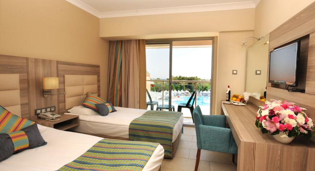 Приехали мы в отель в 11 утра заселение было с 14-00, пошли гулять и осматривать отель. После заселили в номер, номера очень красивые и чистые, мебель новая, есть кондиционер, телевизор, бар, сейф (бесплатный). Номер нам дали 1401 с видом на бассейн и море, очень красиво ! Кормят просто отлично, очень много зелени и салатов, овощей, мясо кура и индейка, говядину подают очень редко, для детишек есть отдельное меню, про вкусняшки вообще молчу их просто несчитанное количество и каждый раз были разные. Все всегда было свежее и очень вкусное (основной ресторан). Есть Снек-Бар там с 10 утра до 15 вечера всегда есть картошка фри, бургеры, овощи, нагетсы, сосиски ! Короче кормят на убой ))))))