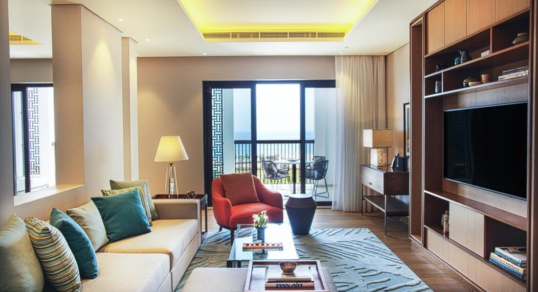 Resort Suite (90 м2, вид на море, вітальня, спальня з дверима, 2 балкони, ліжко king-size, макс. 3+1 чол. (До 6 років)).